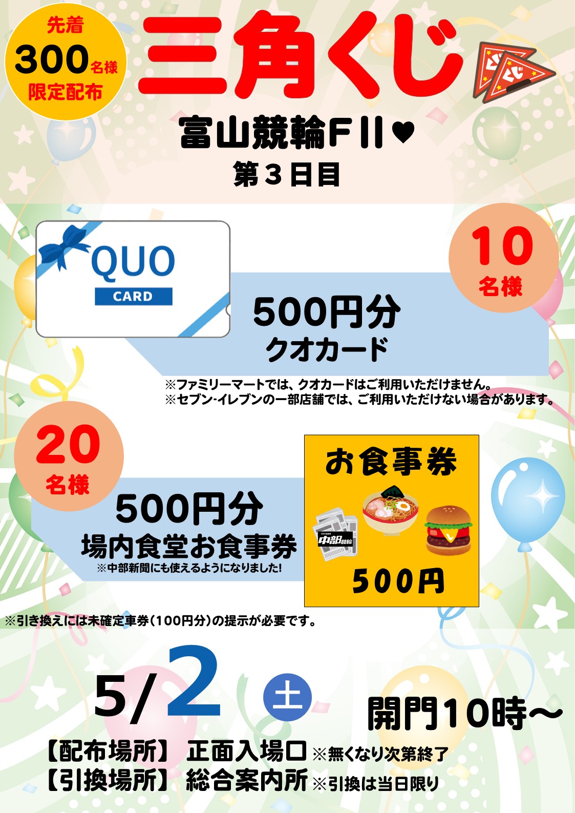 【日時】5月2日(土)富山FⅡ 3日目(最終日)