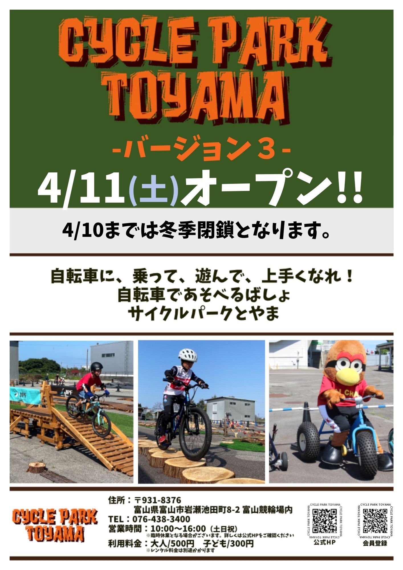 2026.02.18【サイクルパークとやま 営業再開について】〈4/11〉